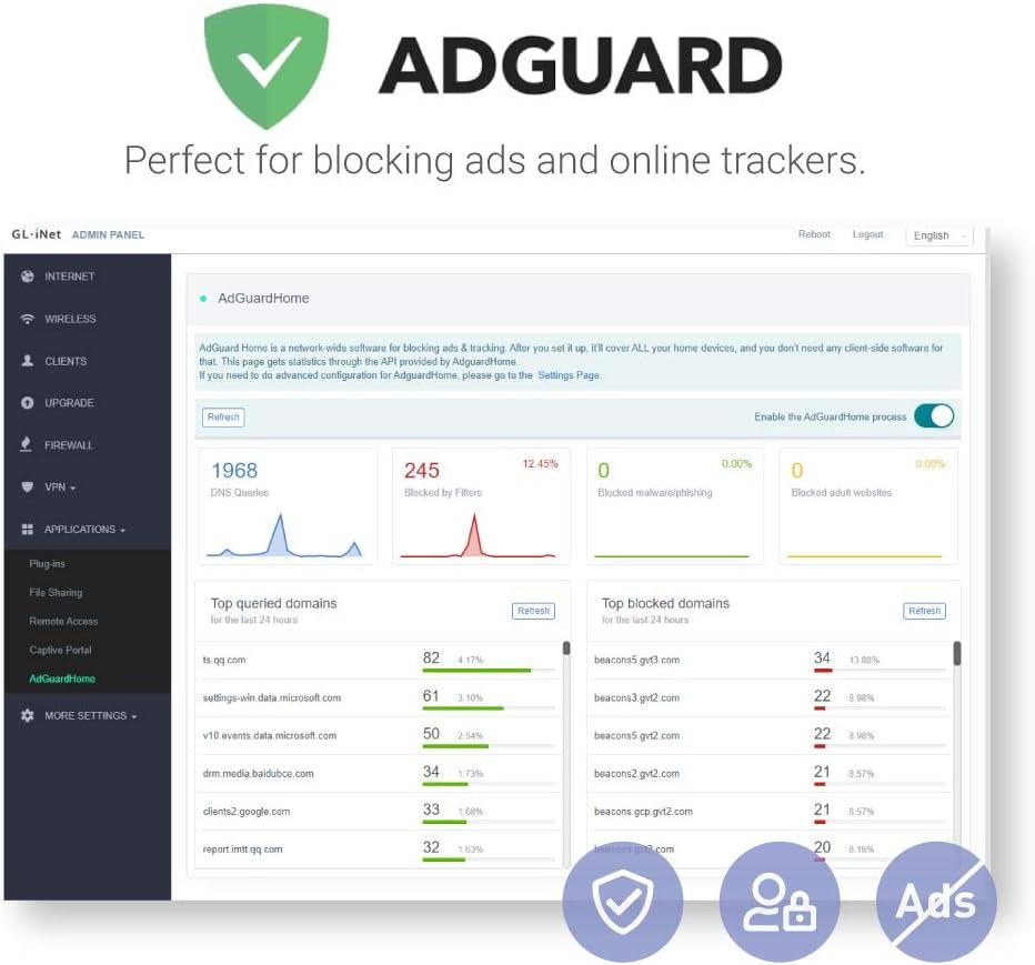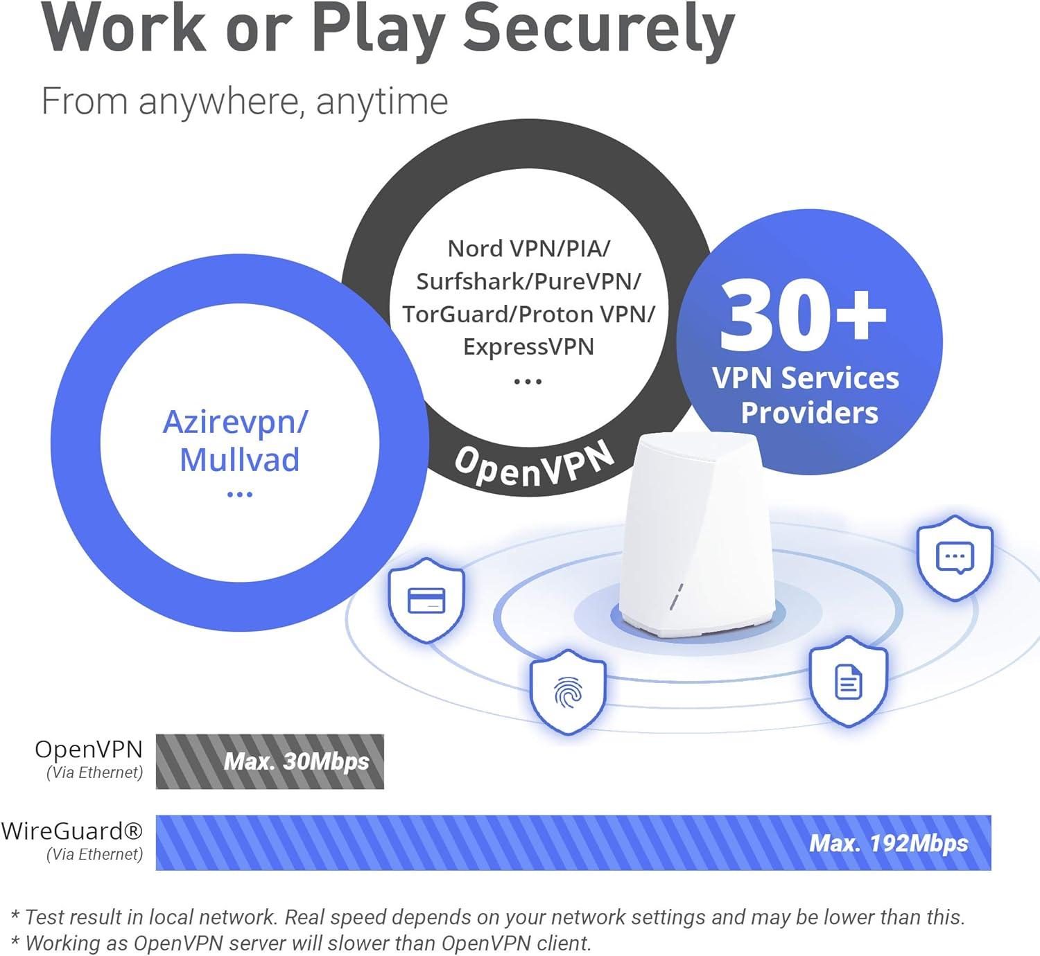 【STRENGTHENS INTERNET SECURITY】OpenVPN and WireGuard pre-installed, compatible with 30+ VPN service providers. Encrypted DNS with Cloudflare. AdGuard Home Supported for blocking ads and online tracking.
