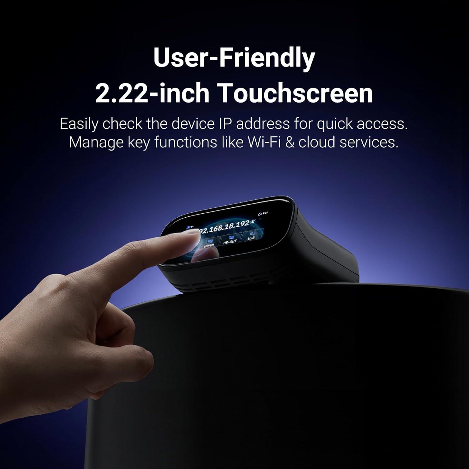 【Touchscreen Interface】The 2.22-inch built-in touchscreen features an intuitive user interface that is easy to operate and requires no technical expertise, allowing you to effortlessly view and manage important functions—such as connecting to Wi-Fi networks and enabling or disabling cloud services.