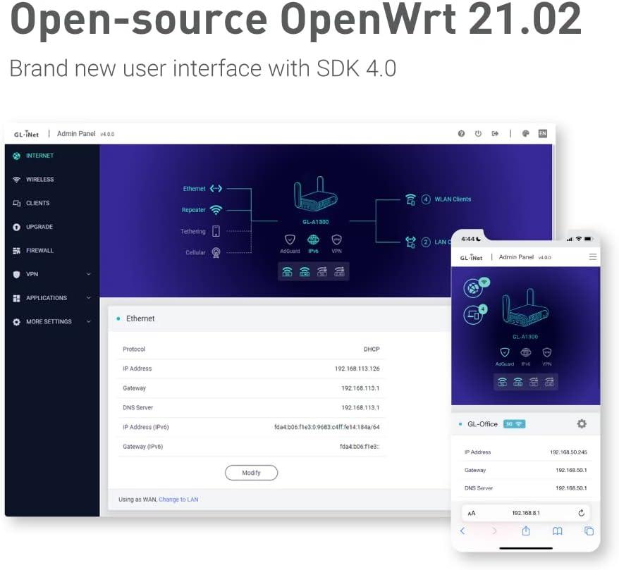 【OPEN SOURCE & PROGRAMMABLE】 Slate Plus runs on the latest OpenWrt 21.02 operating system and significantly reduced signal interference. You can customize the router and install applications based on your preferences.