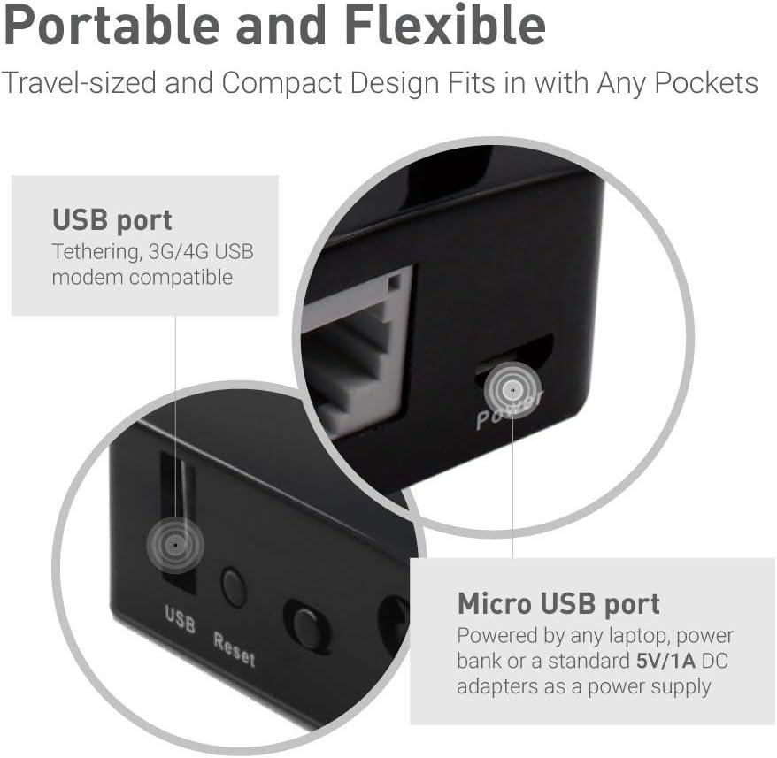 The router is lightweight, pocket friendly, and portable. It can be plugged into any laptops, power banks, or 5V DC adapters for power supply.
