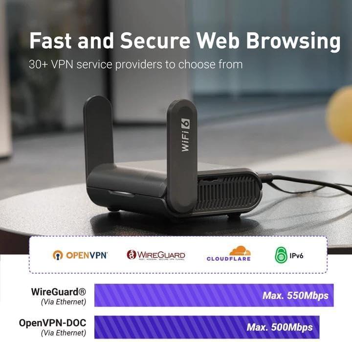 【Fast and Secure Browsing】IPv6 supported; OpenVPN & WireGuard pre-installed, compatible with 30+ VPN service providers, OpenVPN speed up to 500 Mbps; WireGuard speed up to 550 Mbps. Cloudflare encryption supported to protect the privacy.