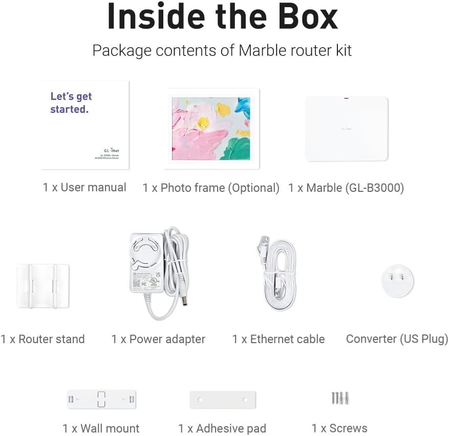 【Easy Installation & Setup】Simple installation process by snapping the router onto the back panel of the photo frame. Then set up Marble effortlessly using our mobile app or the user-friendly web Admin Panel, allowing you to customize your network settings in a few simple steps.