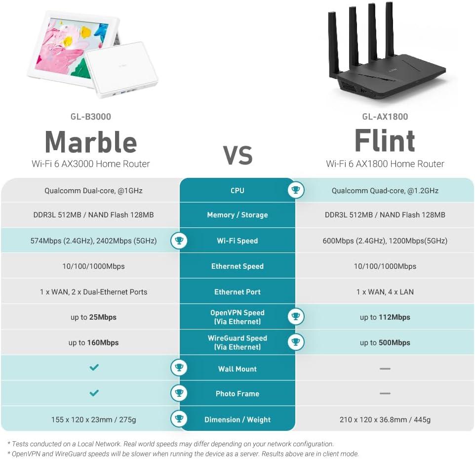 【Enhanced Security with VPN Support】A wifi router with pre-installed OpenVPN and WireGuard, compatible with 30+ VPN service providers. Encrypts all network traffic within the connected network. Max. VPN speeds of 30Mbps (OpenVPN); 190 Mbps (WireGuard).