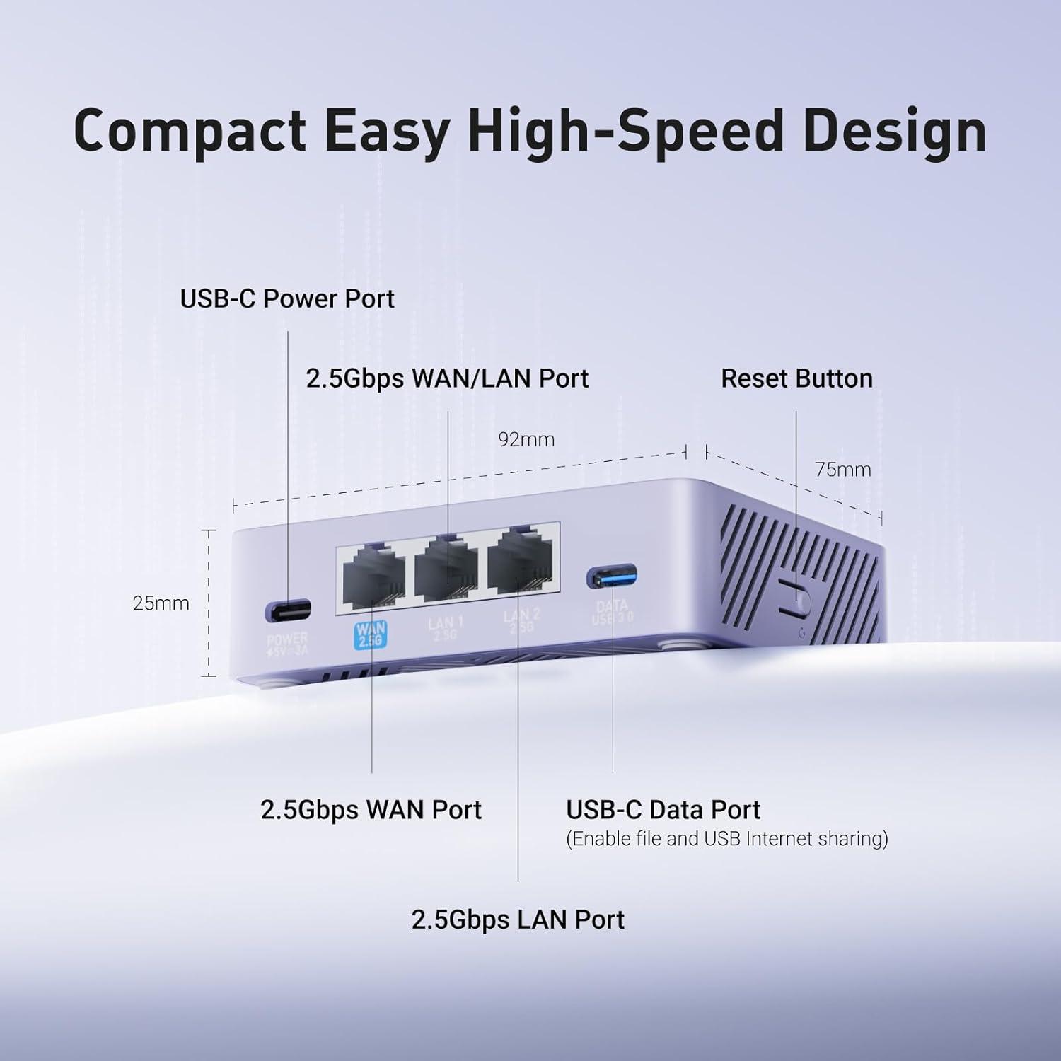 【OpenWrt & USB 3.0 Expansion】OpenWrt with 1GB DDR4 and 8GB eMMC lets you install plugins and build VPN, ad-blocking or NAS, while USB 3.0 Type‑C connects high-speed storage or 4G/5G dongles