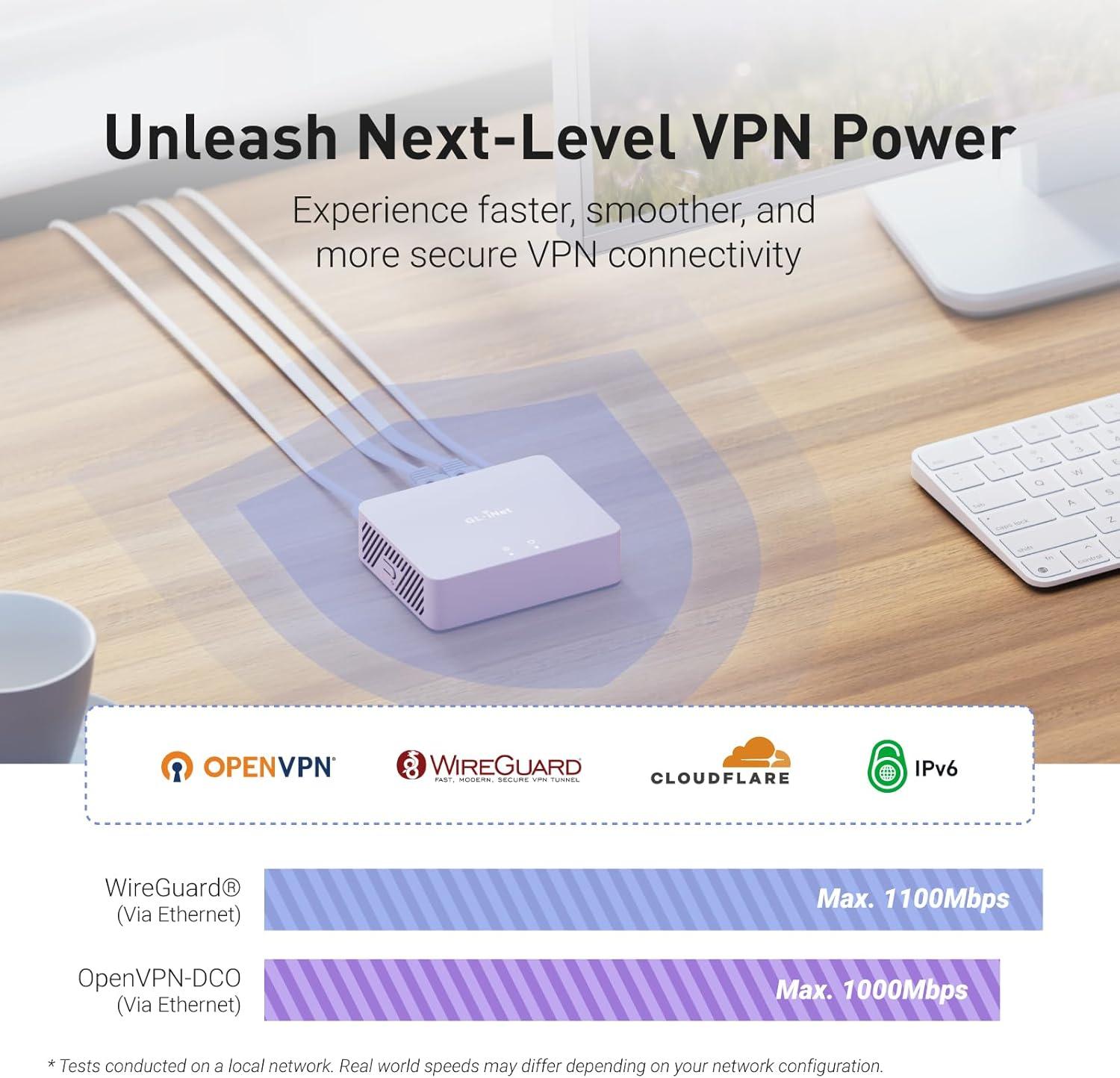 【Up to 1100 Mbps VPN Speed 】 Hardware-accelerated WireGuard and OpenVPN-DCO deliver up to 1100 Mbps VPN throughput, over 3× faster than Brume 2 for smooth remote access and file transfers.